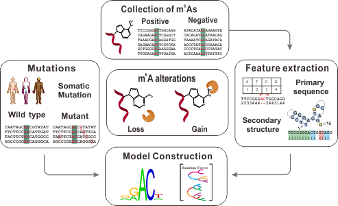 N6-methyladenosine (m6A) is one of the most abundant modifications in RNA molecules, and regulates almost all aspects of RNA metabolism. Genetic variants especially cancer mutations can significantly alter the status of m6A, leading to the gain or loss of N6-methyladenosine. m6ASNP is specifically designed to characterize such genetic mutations and potential roles of m6A alterations may be derived from our prediction tool.